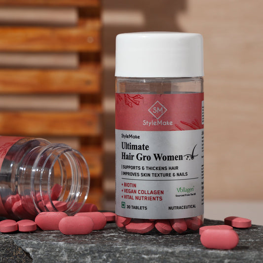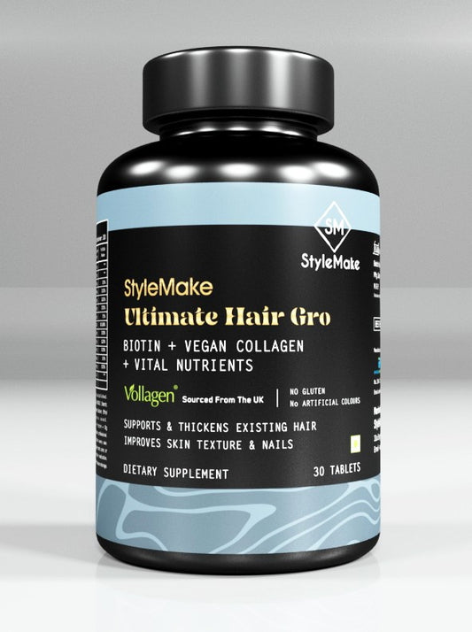 StyleMake Ultimate Hair Gro Vitamin for Women | Premium Formula with Biotin + Vegan Collagen from the UK | Reduces Hair Loss, Promotes Regrowth, Enhances Skin & Nail Health | 30 Tablets